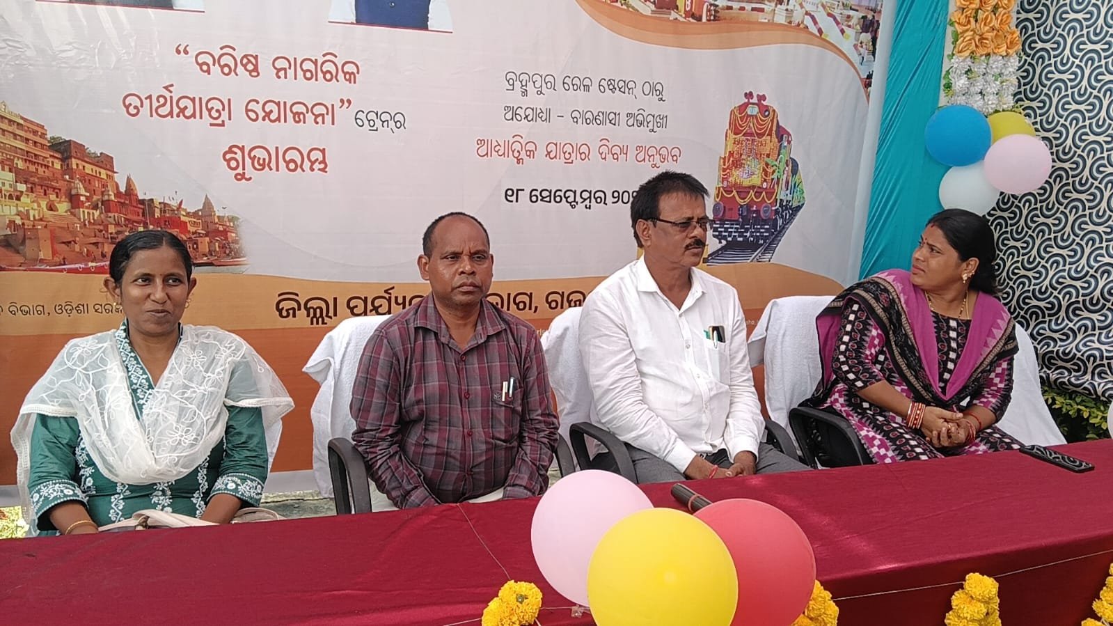 ଗଜପତି(ଜୟ ଓଡିଶା) -ଅଯୋଧ୍ୟା-ବାରଣସୀ ତାର୍ଥଯାତ୍ରାର ଶୁଭାରମ୍ଭ କାର୍ଯ୍ୟକ୍ରମରେ ମୁଖ୍ୟ ଅତିଥି ଭାବେ ସଭାପତି,ଗଜପତି ଜିଲ୍ଲାପରିଷଦ ଅଧ୍ୟକ୍ଷ ଜି. ତିରୁପତି ରାଓ, ଏବଂ ସମ୍ମାନିତ ଅତିଥି ଭାବେ ଅତିରିକ୍ତ ଜିଲ୍ଲାପାଳ ମୁନିନ୍ଦ୍ର ହନଗା,ପାରଳା ପୌର ପରିଷଦ ଅଧ୍ୟକ୍ଷା ନିର୍ମଳା ସେଠୀ, କ୍ରୀଡା ଅଧିକାରୀ ଲାବଣେନ୍ଦୁ ମହାନ୍ତି ଏବଂ ଜିଲ୍ଲା ସଂସ୍କୃତି ଅଧିକାରୀ ସୁଶ୍ରୀ ଅର୍ଚ୍ଚନା ମଙ୍ଗରାଜଙ୍କ ଉପସ୍ଥିତିରେ ଅଯୋଧ୍ୟା-ବାରଣାସୀ ଅଭିମୁଖେ ଯାତ୍ରା କରିବାକୁ ଥିବା ଗଜପତିରୁ 72 ଜଣ ତୀର୍ଥଯାତ୍ରୀଙ୍କୁ ନେଇ ଯାଉଥିବା ଦୁଇଟି ବସ୍ କୁ ସବୁଜ ପତାକା ଦେଖାଇ ଶୁଭାରମ୍ଭ କରିଛନ୍ତି।ସୂଚନା ପ୍ରକାରେ ଏହି ତୀର୍ଥ ଯାତ୍ରା କାର୍ଯ୍ୟକ୍ରମ ଚଳିତ ମାସ ତା 19-09-2025 ରିଖରେ ବ୍ରହ୍ମପୁର ରୁ ଆରମ୍ଭ ହୋଇ ତା 24-09-2025 ରିଖ ରେ ଶେଷ ହେବ।ଉକ୍ତ ତୀର୍ଥ ଯାତ୍ରାରେ ଯୋଗଦେବା ନିମନ୍ତେ ଯାତ୍ରୀମାନେ ଓଡିଶା ସରକାରଙ୍କ ପର୍ଯ୍ୟଟନ ବିଭାଗ, ଦ୍ବାରା ପ୍ରଦତ୍ତ Website ରେ Online ପ୍ରକ୍ରିୟା ମାଧ୍ୟମରେ ଆବେଦନ କରିଥିଲେ । ସେଥି ମଧ୍ୟରୁ 72 ଜଣ ଯାତ୍ରୀଙ୍କୁ e-randomization ପ୍ରକ୍ରିୟା ମାଧ୍ୟମରେ ରାଜ୍ୟ ପର୍ଯ୍ୟଟନ ବିଭାଗ, ଭୂବନେଶ୍ବର ଚିହ୍ନଟ କରିଛନ୍ତି ଏବଂ ସେମାନେ ହିଁ ଏହିଯାତ୍ରାରେ ସାମିଲ ହେବେ I ସେଥି ମଧ୍ୟରେ ଗୋଷାଣି ବ୍ଲକ ରୁ 16 ଜଣ, ରାୟଗଡ଼ ବ୍ଲକ ରୁ 5 ଜଣ, ନୁଆଗଡ଼ ବ୍ଲକ ରୁ 5 ଜଣ, ରା.ଉଦୟଗିରି ବ୍ଲକ ରୁ 5 ଜଣ, ମୋହନା ବ୍ଲକରୁ 5 ଜଣ, ଗୁମ୍ମା ବ୍ଲକ ରୁ 5 ଜଣ, କାଶୀନଗର ବ୍ଲକରୁ 9 ଜଣ, ପାରଳାଖେମୁଣ୍ଡି ମ୍ୟୁନିସିପାଲିଟିରୁ 14 ଜଣ ଏବଂ କାଶୀନଗର ବିଜ୍ଞାପିତ ଅଞ୍ଚଳ ପରିଷଦରୁ 5 ଜଣ ଲେଖାଏଁ ତୀର୍ଥଯାତ୍ରୀ ରହିଛନ୍ତି । ଜିଲ୍ଲା ପ୍ରଶାସନ ତରଫରୁ ଯାତ୍ରୀମାନଙ୍କ ସୁରକ୍ଷା ନିମନ୍ତେ ନିମ୍ନଲିଖିତ ପଦକ୍ଷେପ ମାନ ଗ୍ରହଣ କରାଯାଇଛି।1. ବ୍ରହ୍ମପୁର ଗସ୍ତ ପୂର୍ବରୁ ଯାତ୍ରୀ ମାନଙ୍କର ସ୍ବାସ୍ଥ୍ୟ ପରୀକ୍ଷା କରାଯାଇଛି। 2. ସମସ୍ତ ଯାତ୍ରୀଙ୍କୁ ସେମାନଙ୍କ ବ୍ଲକ କାର୍ଯ୍ୟାଳୟ ଏବଂ ବିଜ୍ଞାପିତ ଅଞ୍ଚଳ ପରିଷଦ କାର୍ଯ୍ୟାଳୟରୁ ସରକାରଙ୍କ ଖର୍ଚ୍ଚରେ ଅଣାଯାଇଛି ଏବଂ ଫେରିଲା ବେଳେ ମଧ୍ୟ ସମସ୍ତଙ୍କୁ ସେହି ସ୍ଥାନରେ ଛଡ଼ାଯିବ । 3. ବ୍ରହ୍ମପୁର ପହଞ୍ଚିଲା ପରେ ସମସ୍ତଙ୍କୁ ଏକ କିଟ୍ ଦିଆଯିବ, ଯେଉଁଥିରେ କି ତାଙ୍କର ନିତ୍ୟ ଆବଶ୍ୟକ ଜିନିଷ ରହିଥିବ।4. ଟ୍ରେନ୍ ଯାତ୍ରା ସମୟରେ IRCTC ତରଫରୁ ସ୍ବାସ୍ଥ୍ୟ ଜନିତ ସମସ୍ୟା ପାଇଁ ଆବଶ୍ୟକ ଡ଼ାକ୍ତର ଟିମ୍ ଟ୍ରେନ୍ ରେ ରହିବେ। 5. ଆମ ଜିଲ୍ଲାରୁ ସମସ୍ତ ଯାତ୍ରୀଙ୍କ ତତ୍ତ୍ବାବଧାନ ପାଇଁ ଦୁଇଜଣ Escort Officer ସେମାନଙ୍କର ସାଙ୍ଗରେ ଯାତ୍ରା କରିବେ। 6. ବ୍ରହ୍ମପୁର ରେଳ ଷ୍ଟେସନରେ ଟ୍ରେନ ରେ ବସାଇବା ଏବଂ ଆସିବା ସମୟରେ ଯତ୍ନ ଓ ସୁରକ୍ଷାରେ ଆଣିବା ପାଇଁ ପର୍ଯ୍ୟଟନ ଅଧିକାରୀଙ୍କ ସହ ଏକ ଟିମ୍ ରହିବେ।7. ଯାତ୍ରୀ ମାନଙ୍କର ଯାତ୍ରା ସମୟରେ ସମସ୍ତ ଖର୍ଚ୍ଚ ଓଡ଼ିଶା ସରକାର ବହନ କରିବେ।ଉପସ୍ଥିତ ସମସ୍ତ ଅଧିକାରୀ ତଥା କର୍ମଚାରୀ ତୀର୍ଥଯାତ୍ରୀଙ୍କୁ ଉତ୍ସାହିତ କରିବା ସହ ତାଙ୍କର ଯାତ୍ରା ମଙ୍ଗଳମୟ ହେଉ ବୋଲି ଭଗବାନଙ୍କ ନିକଟରେ ପ୍ରାର୍ଥନା କରିଥିଲେ। ଏହି କାର୍ଯ୍ୟକ୍ରମକୁ ସଫଳ ରୂପାୟନ ପାଇଁ ଜିଲ୍ଲା ଶିଶୁ ସୁରକ୍ଷା କାର୍ଯ୍ୟାଳୟର କର୍ମକର୍ତ୍ତା ଭାରପ୍ରାପ୍ତ ଜିଲ୍ଲା ପର୍ଯ୍ୟଟନ ଅଧିକାରୀ ଶ୍ରୀଯୁକ୍ତ ଅରୁଣ କୁମାର ତ୍ରୀପାଠୀଙ୍କ ନେତୃତ୍ବରେ ପରିଚାଳନା ହୋଇ ଥିଲା।ଗଜପତି ରୁ ବିବେକାନନ୍ଦ ବ