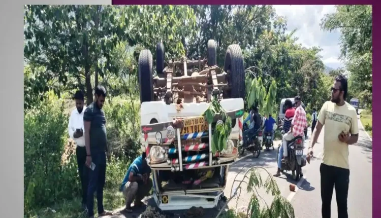 ଭାରସାମ୍ୟ ହରାଇ ଓଲଟିଲା ପିକଅପ ଭ୍ୟାନ